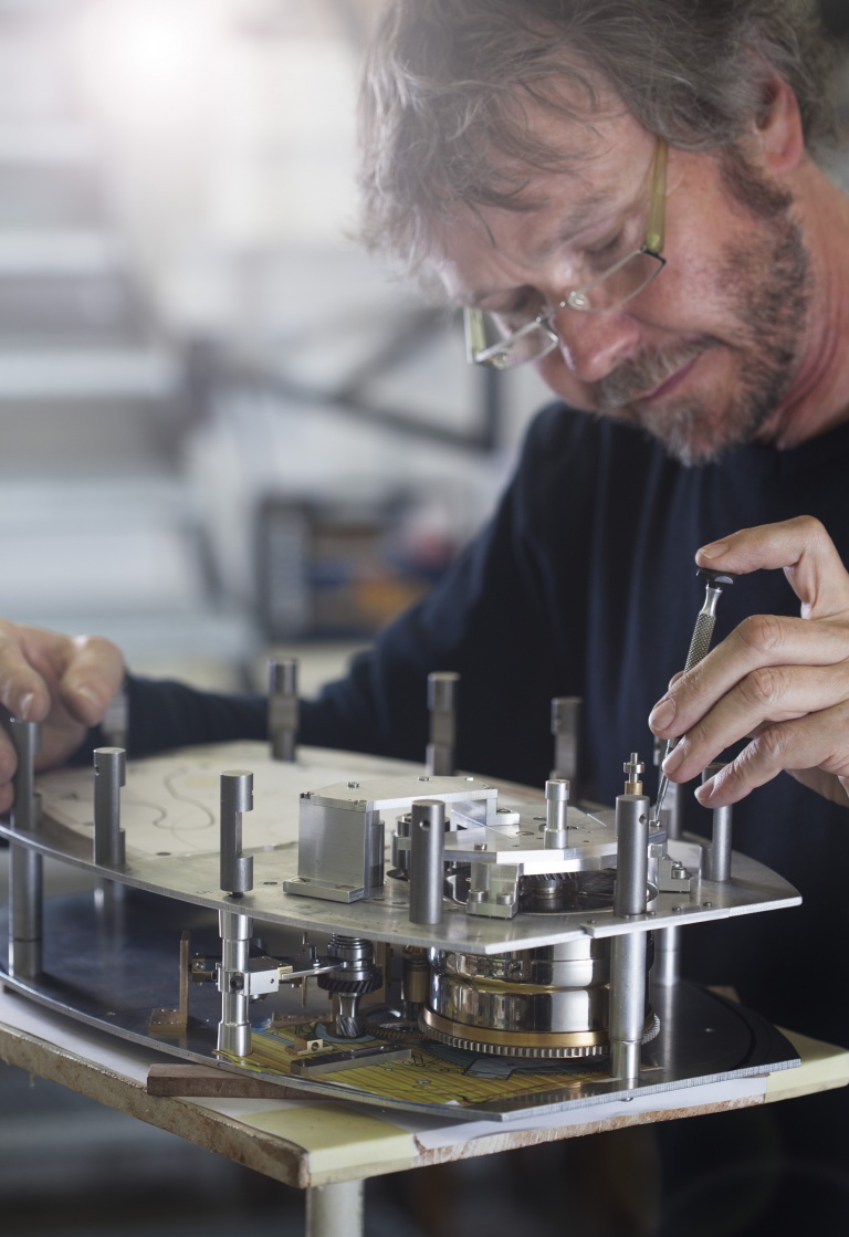 Une horloge de table exceptionnelle. Pièce unique. Union de tous les arts mécaniques, designer, horloger, sculpteur, graveur. Comment communiquer toute la profondeur d’une telle réalisation? Comment la traduire visuellement?En repartant de l’essentiel: la main. Et en fixant la magie des gestes image par image.